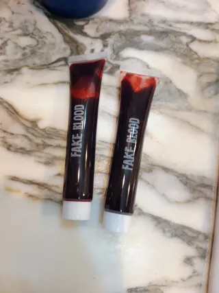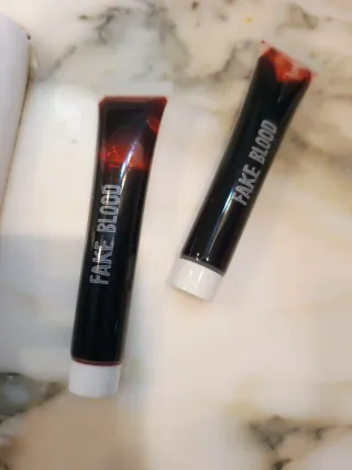 Due tubetti di sangue finto, ideali per costumi e trucchi di Halloween. - Colore: rosso vivo. - Contenuto: 2 tubetti.