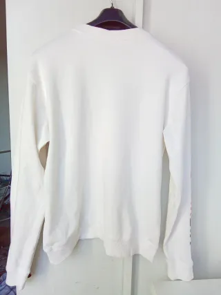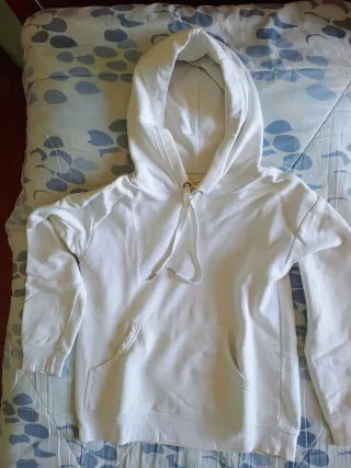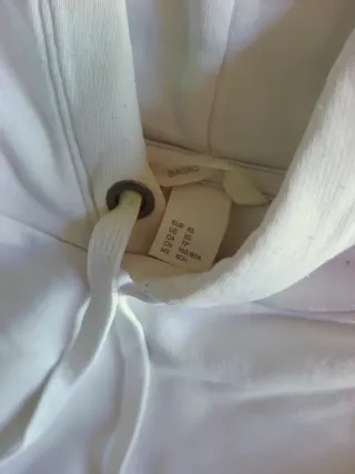 Felpa con cappuccio H&M in colore bianco. Un capo comodo e versatile. - Tessuto morbido. - Tasca frontale. - Cappuccio con laccetti. - Usata. Ha dei puntini rossi, poco visibili