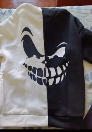 Felpa con un design unico diviso a metà tra bianco e nero. Presenta una stampa grafica di un teschio stilizzato che attraversa entrambi i colori. - Design bicolore - Stampa grafica - Taglio moderno