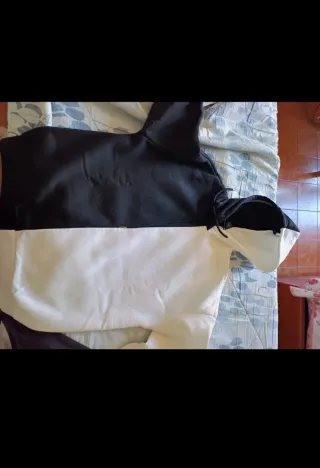 Felpa Adidas chile 62, taglia L, senza cartellino ma mai indossata, nessun segno di usura come si può vedere dalle foto, variante rara. Colore: prevalentemente nera lucida/“wet look”. Logo: Trefoil “adidas” ricamato sul petto. Zip: piena, centrale. Colletto: a giro/alto. Stile: urban streetwear anni 2000, con estetica da “track top” retrò. Materiale: 100% poliestere. Dettagli: grafica/striscia orizzontale chiara (una banda color oro-grigio/argento) sul davanti.