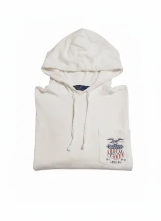 Felpa con cappuccio Polo Ralph Lauren di colore bianco. - Logo sul taschino. - Cappuccio con laccetti. - Tasca a marsupio.
