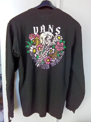 T-shirt Vans taglia M in cotone colore nero, manica lunga, grafica fronte/retro Condizioni generali ottime SPALLE CM 48 TORACE CM 50