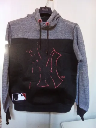 Felpa Majestic Athletic baseball NY YANKEES taglia M, in cotone colore nero e grigio, manica lunga e cappuccio. Condizioni generali ottime, la grafica frontale ha perso un po' di vernice comunque bell' effetto craquelé - Patch MLB sul lato. SPALLE CM 46 TORACE CM 55 MANICA CM 50 ( DA ASCELLA) LUNGHEZZA CM 60