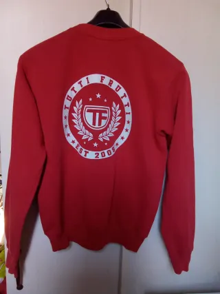 Felpa Fruit of the Loom taglia S linea Tutti Frutti anni 2010, tag CLASSIC SWEET, in cotone colore rosso, manica larga, logo frontale e grafica sul retro con leggero effetto craquelé. Condizioni generali più che ottime SPALLE CM 46 TORACE CM 50 MANICA CM 54 ( DA ASCELLA) LUNGHEZZA CM 59