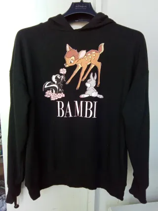 Felpa nera con stampa Disney taglia S ( VESTE OVER ), in cotone colore nero, stampa Bambi frontale Condizioni generali impeccabili pari al nuovo SPALLE CM 65 TORACE CM 56