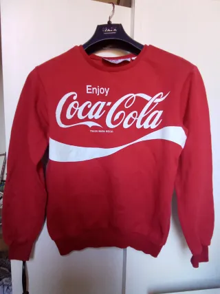 Felpa girocollo Coca-Cola taglia S in cotone colore rosso, stampa frontale - Orlo e polsini a costine. Condizioni generali più che ottime SPALLE CM 46 TORACE CM 51