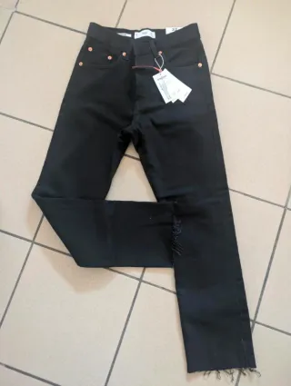 bellissimi jeans neri firmati Mango (MNG Denim), modello Havana. Il capo è nuovo, mai indossato e completo di cartellino. I jeans presentano un taglio moderno e molto ricercato, caratterizzati da un orlo a taglio vivo con frange sottili che donano un tocco urban e trendy. Caratteristiche principali: Modello: Havana - Straight Leg (Gamba dritta). Vita: High Waist (Vita alta) per una vestibilità comoda e valorizzante. Lunghezza: Cropped (taglio alla caviglia). Colore: Nero denim. Dettaglio fondo: Orlo sfrangiato originale. Condizioni: Nuovo con cartellino (NWT). Taglia e vestibilità: Taglia EUR: 32 xxs
