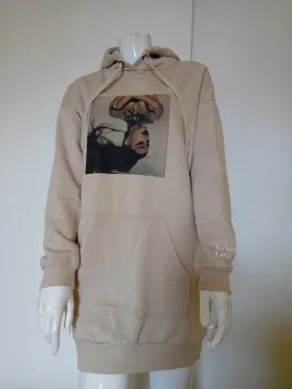 Felpa lunga con stampa di Ariana Grande. - Stampa frontale. - Tasca a marsupio. - Cappuccio con laccetti. - Polsini e fondo a costine.