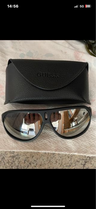 Occhiali da sole Guess con montatura nera e lenti a specchio argentate. Inclusa custodia originale. - Montatura in plastica resistente. - Lenti con finitura a specchio. - Custodia in similpelle nera con logo Guess.