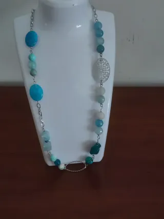 Elegante collana lunga realizzata in acciaio con pietre dure naturali di Emimorfite, turchese morenci, agata, apatite, calcedonio e acquamarina. Nuova. Sconti per più articoli acquistati insieme. - Lunghezza medio corta. - Chiusura a moschettone. - Design unico con pietre sfaccettate e lisce. - Elemento centrale decorativo in acciaio traforato. SPEDISCO SOLO CON POSTE ITALIANE E INPOST /LOCKER E FERMOPOINT BRT