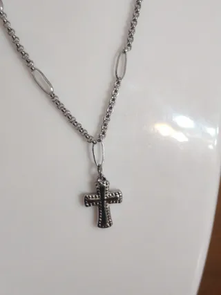 Collana in acciaio con un ciondolo a forma di croce. - Materiale: acciaio. - Design: croce. Nuova. Sconti per più articoli acquistati insieme. SPEDISCO SOLO CON POSTE ITALIANE E INPOST /LOCKER E FERMOPOINT BRT