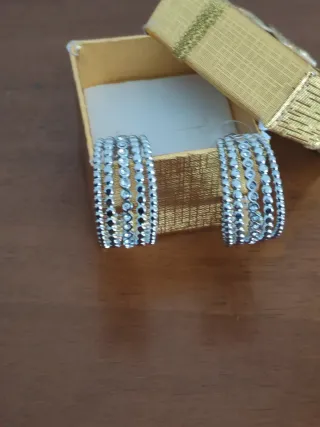 Eleganti orecchini a cerchio in acciaio con zirconi incastonati. - Design a più fili con pietre scintillanti. - Finitura lucida. Semi cerchi. Nuovi. Sconti per più articoli acquistati insieme. SPEDISCO SOLO CON POSTE ITALIANE E INPOST /LOCKER E FERMOPOINT BRT