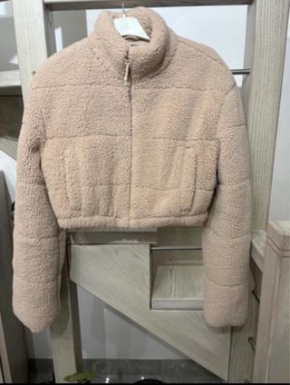 Giubbotto corto in morbida pelliccia sintetica. - Collo alto con zip. - Design trapuntato. - Vestibilità cropped.