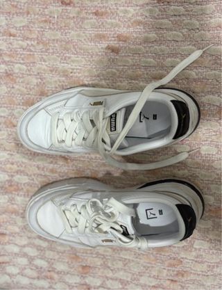 Sneakers Puma dal design moderno e versatile. - Tomaia in pelle bianca. - Dettagli neri sul tallone. - Suola in gomma.