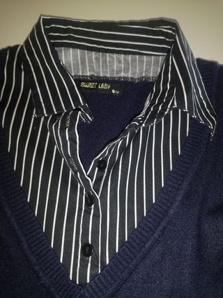 Golfino blu con stood finta camicia a righe vedi foto allegati