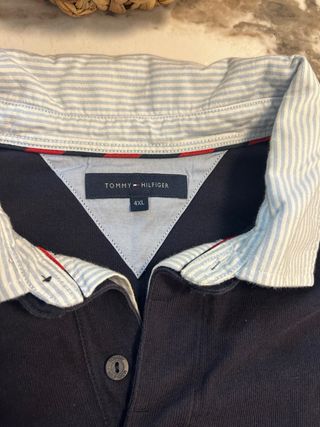 Maglione Tommy Hilfiger, mai indossato e in perfette condizioni. - Colletto a righe. - Chiusura con bottoni. - Logo ricamato sul petto. -logo ricamato sul retro