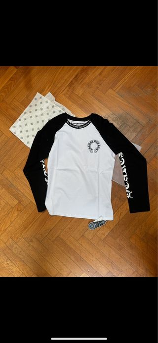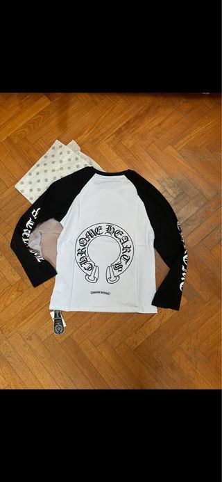 Maglia a maniche lunghe con design raglan. - Maniche rosse. - Corpo bianco. - Logo Chrome Hearts sul petto. - Etichetta con logo sul fondo.