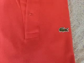 Polo da uomo Lacoste di colore rosso. - Logo del coccodrillo ricamato sul petto. - Tessuto a nido d'ape. - Chiusura con bottoni.