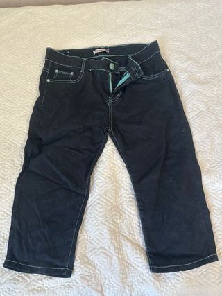 Pantaloni pinocchietto da donna. - Cuciture a contrasto azzurre. - Chiusura con zip e bottone. - Tasche anteriori. - Vita media. marca Miss.Natalie Denim division taglia XL/48