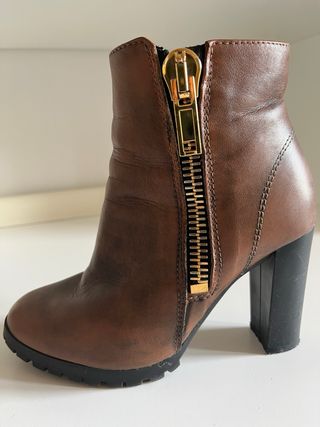 Elegante tronchetto in pelle marrone, perfetto per completare ogni outfit. - Materiale: Pelle - Dettaglio tacco alto - Suola carrarmato