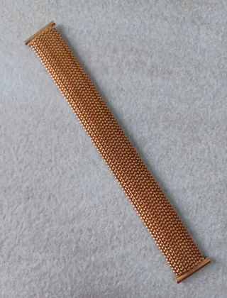 Elegante bracciale vintage nuovo NOS per orologi com ansa 20mm per 15 cm di lunghezza con una finitura color oro logato Tevaflex, maglia elastica Tessuflex come utilizzato da Gay Freres. Adatto ad orologi eleganti come Omega Seamaster o Constellation, o cronografi come Universal Geneve. Sono nuovo di questa piattaforma ma sono presente su tutti in principali siti di vendita con 100% di feedback positivi. - Design a rete. - Materiale metallico. Contattami per ulteriori dettagli