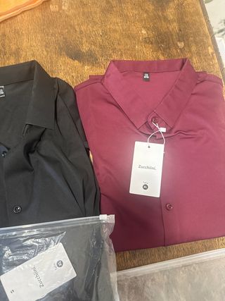 Set di due camicie a manica lunga da uomo. Una camicia è nera e l'altra è bordeaux. Entrambe sono taglia XL.