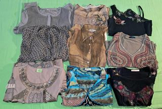 Lotto composto da nove capi d'abbigliamento da donna, perfetti per un look vintage. I vestiti sono di marca: SportMax Code, Intimissi, Marella, Giorgia & Johns, Evalinka, Ray, Sonia Fortuna. La taglia è S e sono tutti stati indossati dalla stessa persona. Per ulteriori informazioni non esitate a contattarmi.