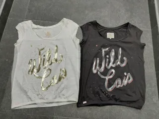 Confezione da due camicie con stampa. - Camicia bianca con dettagli dorati. - Camicia nera con dettagli argentati e rosa. - Design Wild & Cool. Elastico in vita e trasparenti sul retro. Molto originali. 4€ ciascuna. La grigia mai indossata. La bianca indossata due volte.