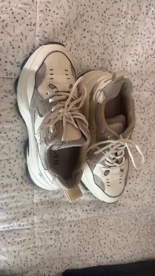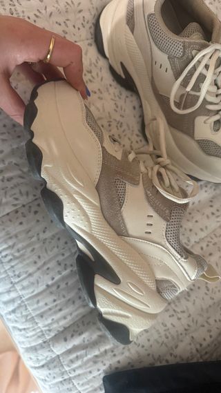 Camicie con suola spessa stile bubble sole. Design moderno in tonalità beige e grigio. Lacciughi per un'aderenza sicura. Materiali traspiranti. 1 sola messa. Mi sono costati 26 euro. Include scatola originale. Chiedere senza impegno. Prezzo negoziabile 💶