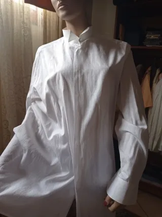 Set di due camicie bianche da uomo. Perfette per ogni occasione. - Design classico. - Collo Mao. - Polsini abbottonati. 10€ ciascuna.