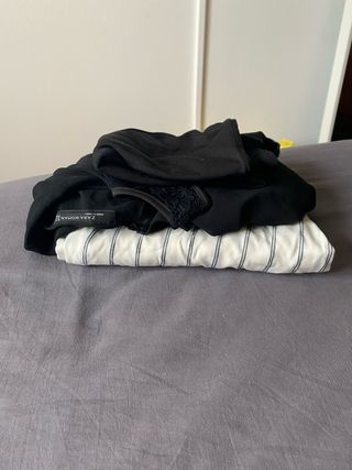 Confezione di tre camicie da donna. Sono di taglie diverse, ma sono per una persona di taglia M. - Camicia fluida: Marca Zara - Camicia a spallette: Marca Ysabel Mora - Camicia a righe: Marca Zara (R235)
