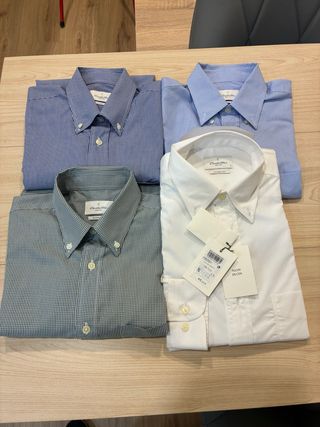 Vendo quattro camicie di taglio classico Emidio Tucci, taglia S. La bianca è praticamente nuova e le altre le ho usate 2-3 volte. Sono in perfette condizioni. Mi sono costate 50€ ciascuna, le vendo per 30€.
