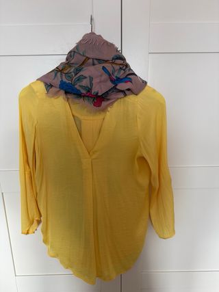 Blusa, maglietta, top, varie taglie S. - Manica lunga con risvolto. - Collo a V con dettagli. - Tessuto leggero e fluido.