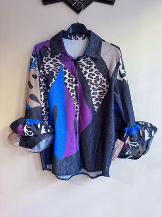 Camicia donna con brillantini e multicolor con volant sulle maniche, taglia unica nuova con etichetta molto bella e originale