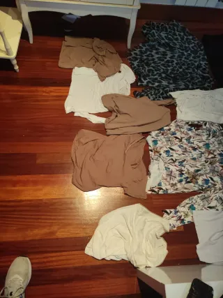 Consegna di abbigliamento da donna taglia M in perfetto stato. Include: -giacca da cappotto -cappotto -2 camicie -vestito -set maglietta e giacca -3 maglioni -2 t-shirt -pigiama