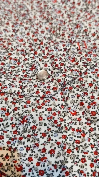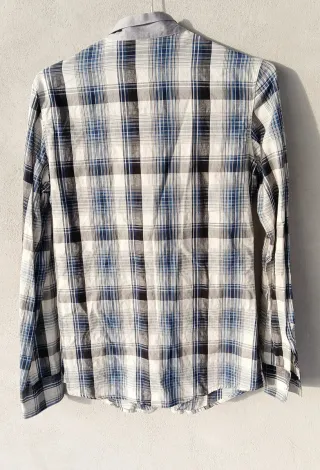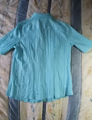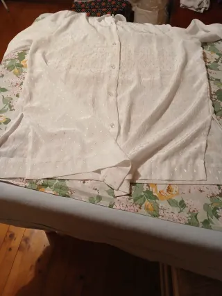 Confezione di due camicie del marchio Zara: - Camicia a fiori. Come si vede nelle foto. L'unico difetto è che un bottone della manica è caduto. - Camicia marrone. Senza difetti. L'unico problema è che rimuovendo l'etichetta sulla schiena sembra che il tessuto sia un po' strappato, ma non lo è. Confezione delle due camicie: 8 euro. Camicie separate: 5 euro ciascuna.