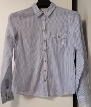 Camicia a righe sottili in toni di blu, ideale per un look casual. Chiusura con bottoni nascosti. Manica lunga. 100% cotone.