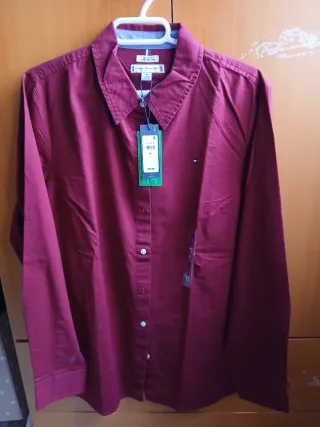 Camicia a manica lunga del marchio Tommy Hilfiger. Colore viola, collo classico, chiusura con bottoni, piccolo logo ricamato sul petto.