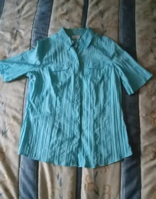 Camicia verde acqua: marca: Rossodisera. ottime condizioni. Ha tutti i brillantini. La Lunghezza misura 58 cm, la larghezza misura 42 cm. Taglia M. Ma va bene anche a chi ha una taglia S perché veste un po' aderente. Camicia fucsia: Marca: Desy-D in ottimo stato. Ha una ciappetta che ho fatto mettere dalla sarta perché mi si apriva quando la indossavo. La Larghezza misura 42 cm, la lunghezza misura 55 cm. Taglia S.