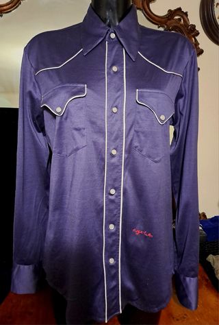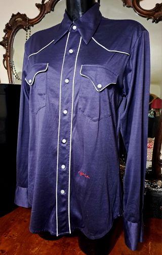 Camicia vintage Colore: azzurro e celeste Fantasia a rombi e iniziali TR Con spalline Taglia Unica ( M ) 40 cm ca. larghezza spalle 63 cm ca. di altezza Tessuto tipo cotone e viscosa Appare come in foto, ottimo stato dati gli anni passati, etichetta del marchio e tessuto mancanti Per qualsiasi informazione non esitate a contattarmi 😊