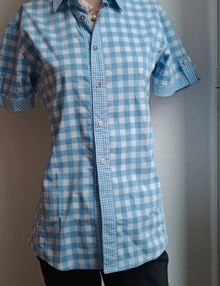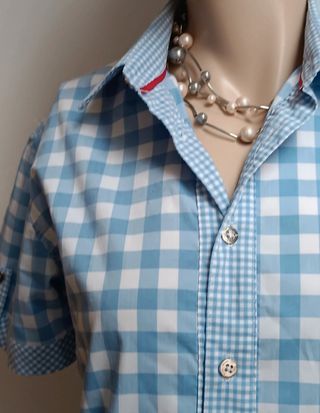 Camicia donna manica corta a quadri celeste e bianco, taglia M in perfette condizioni