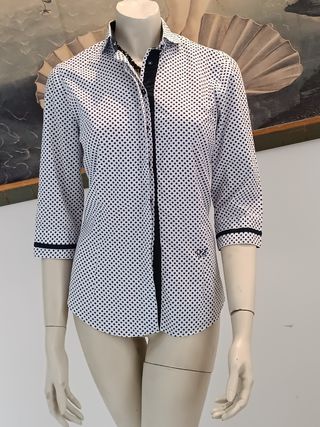 Caporiccio sartoria italiana camicia donna a pois con maniche a 3/4, colore bianco azzurro e Blue, veste taglia S misure nelle foto. In perfette condizioni