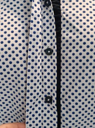 Camicia da uomo a maniche lunghe, taglia M(39) in 100% cotone, con una trama a microfantasia azzurra. Perfetta per un look casual o più formale. Come nuova perchè è solo stata lavata e stirata dopo l'acquisto, non è stata indossata nemmeno una volta. - Tessuto: 100% Cotone - Fantasia: Micro-pois azzurri - Colletto classico Spedizione disponibile in tutta Italia tramite Wallapop o ritiro a mano in zona (Brindisi).
