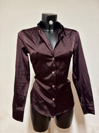 Camicia di classe produzione italiana come da etichetta in foto. Taglia L, colore bordò, materiale 100% poliestere. Ottime rifiniture, con particolare cura nei bottoni, in buone condizioni, in quanto usata poche volte.