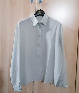 camicia senza collo, leggera, mezza allacciatura, manica lunga, tg M, marca Mango come nuova