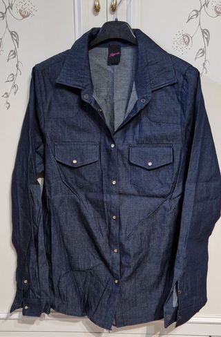 Camicia in jeans dal taglio classico. - Due tasche sul petto. - Chiusura con bottoni. - Polsini con bottoni.