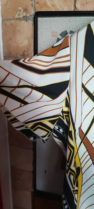 Camicia a maniche lunghe con una fantasia unica. - Fantasia astratta in beige e nero. - Tessuto leggero e fluido. all’interno manca etichetta di composizione