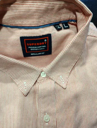 Camicia da uomo Superdry in ottime condizioni, quasi nuova. Presenta un motivo a righe sottili. - Fantasia a righe verticali. - Logo ricamato sul taschino.