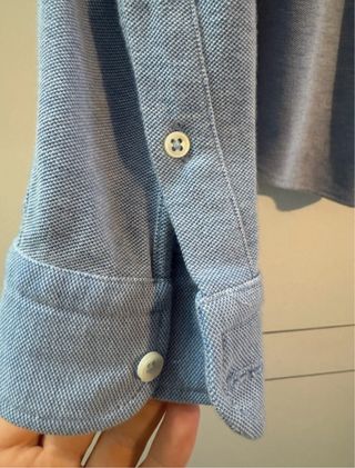 Camicia a maniche lunghe con il classico cavallino ricamato. - Logo del cavallino arancione sul petto. - Colletto button-down. - Chiusura con bottoni. PREZZO TRATTABILE