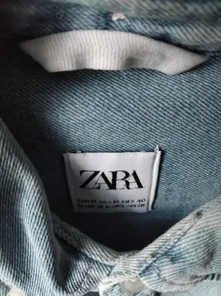 Camicia da uomo in denim di Zara. - Tessuto denim leggero. - Colore blu chiaro. - Collo con bottoni. - Taschino sul petto.